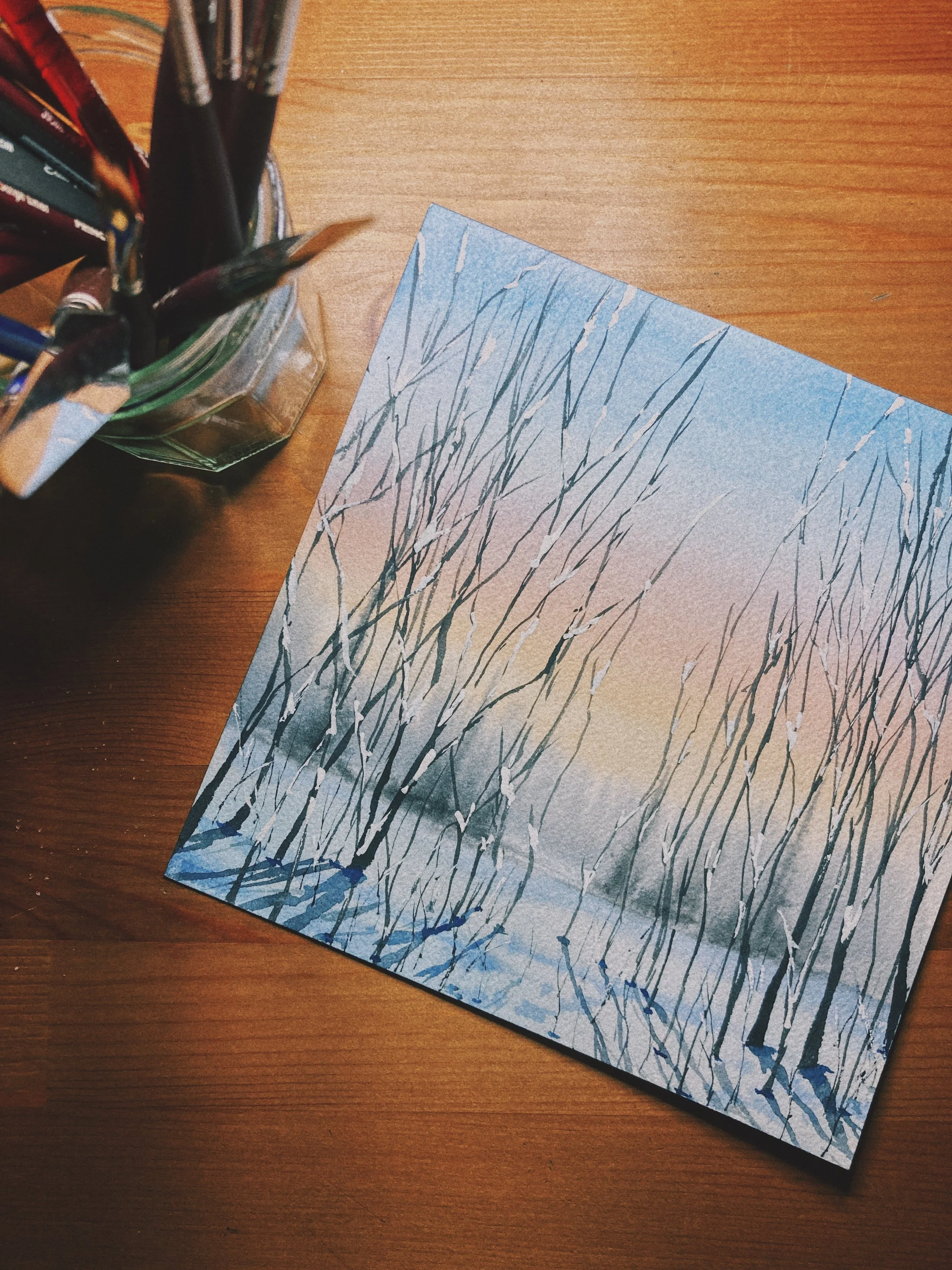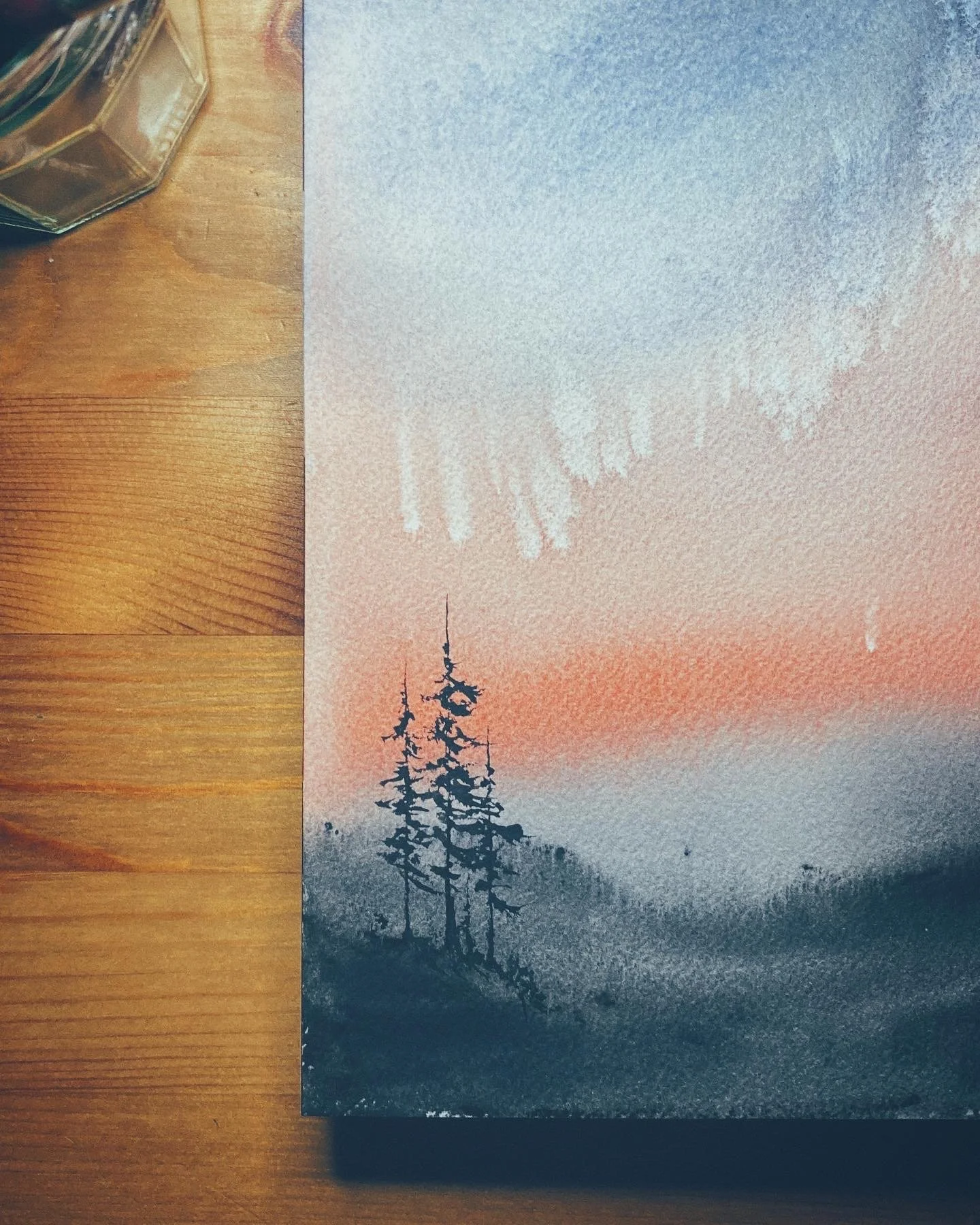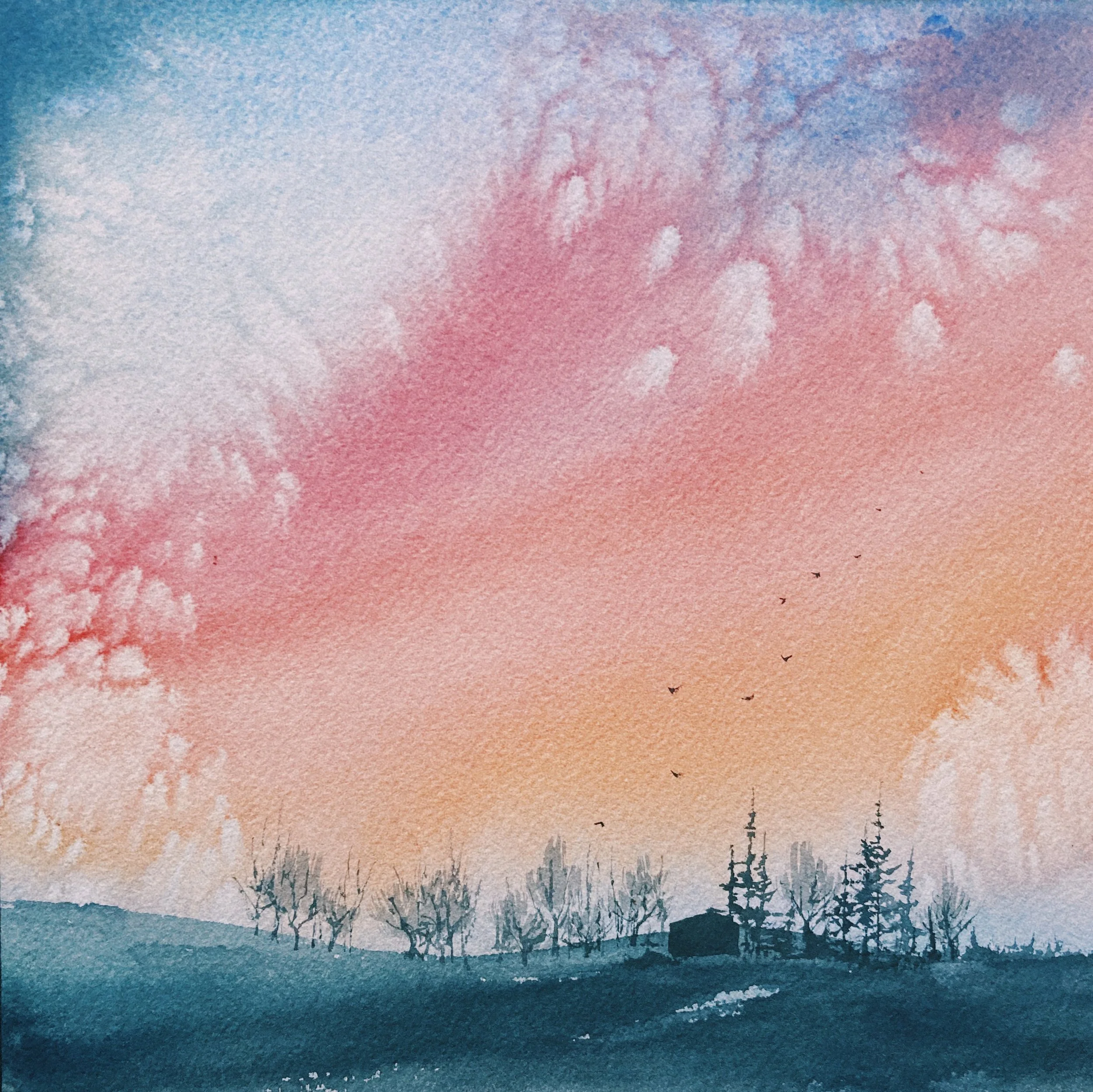 One of the excuses I made a lot through the past year when other tasks were becoming a higher priority than painting was that “I don’t have time.” I’ve found this to be completely untrue. The truth is, you can make time. In the last 10 days, I’ve had moments where I have arrived at the end of a very jam-packed day and painted with my evening tea. Or on my hour-long lunch break between my homeopathy patients, I have taken space to put down the first wash of a sky, or create something more minimalistic. This challenge has already shifted my mindset around time, and around making time for things that are important.