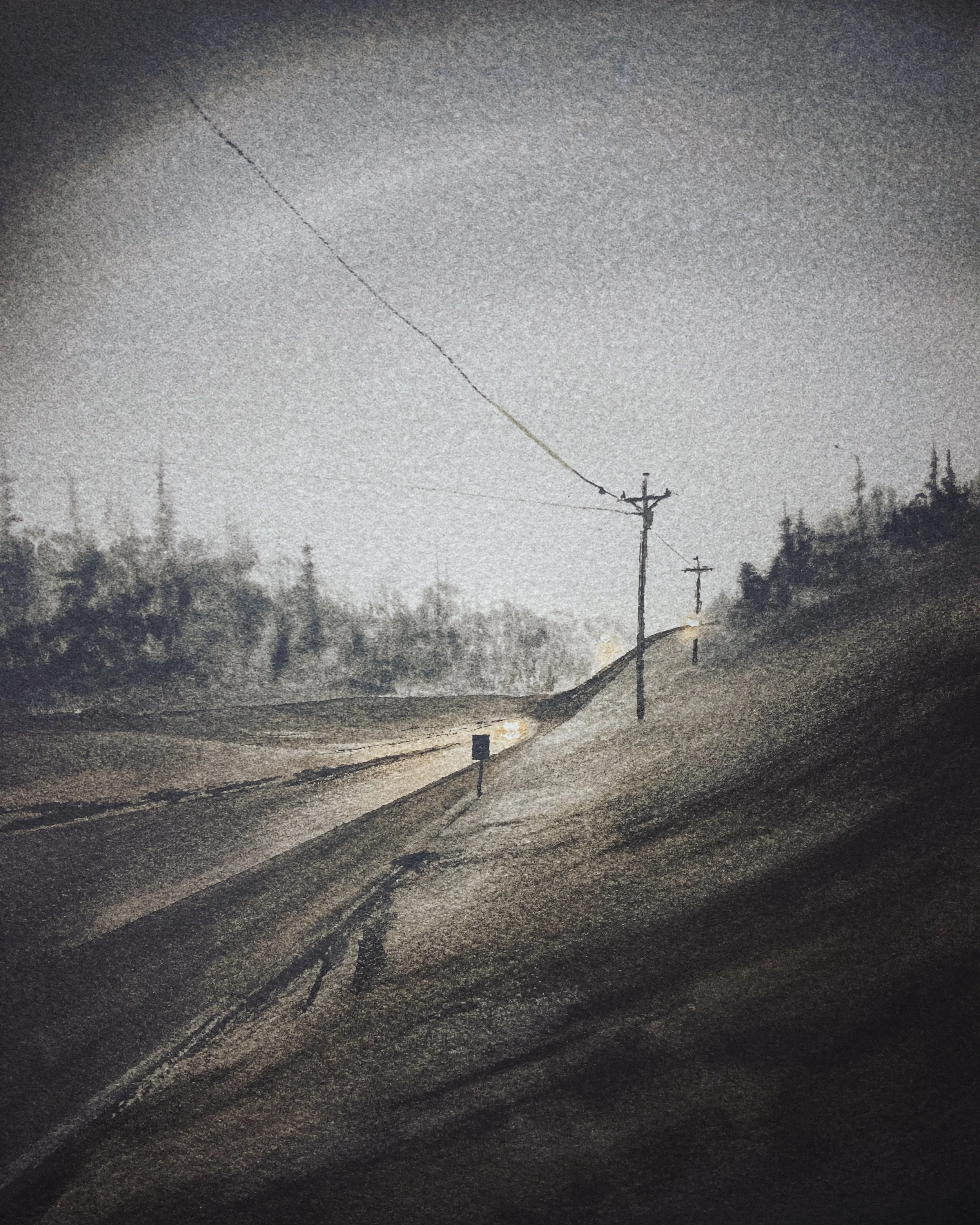 Yesterday, I told my partner I was getting bored with some of my pieces, and he looked at me and said “maybe it’s time for you to challenge yourself.” So, since I had an open evening, I did. At around 8pm, I trudged down to the end of our driveway and snapped a couple dark, hazy shots down the road to try and see if I could paint a dark and dreary scene, with only headlights and streetlights casting shadow and color. I’d never painted anything like it and though it was difficult, I loved every minute of it.