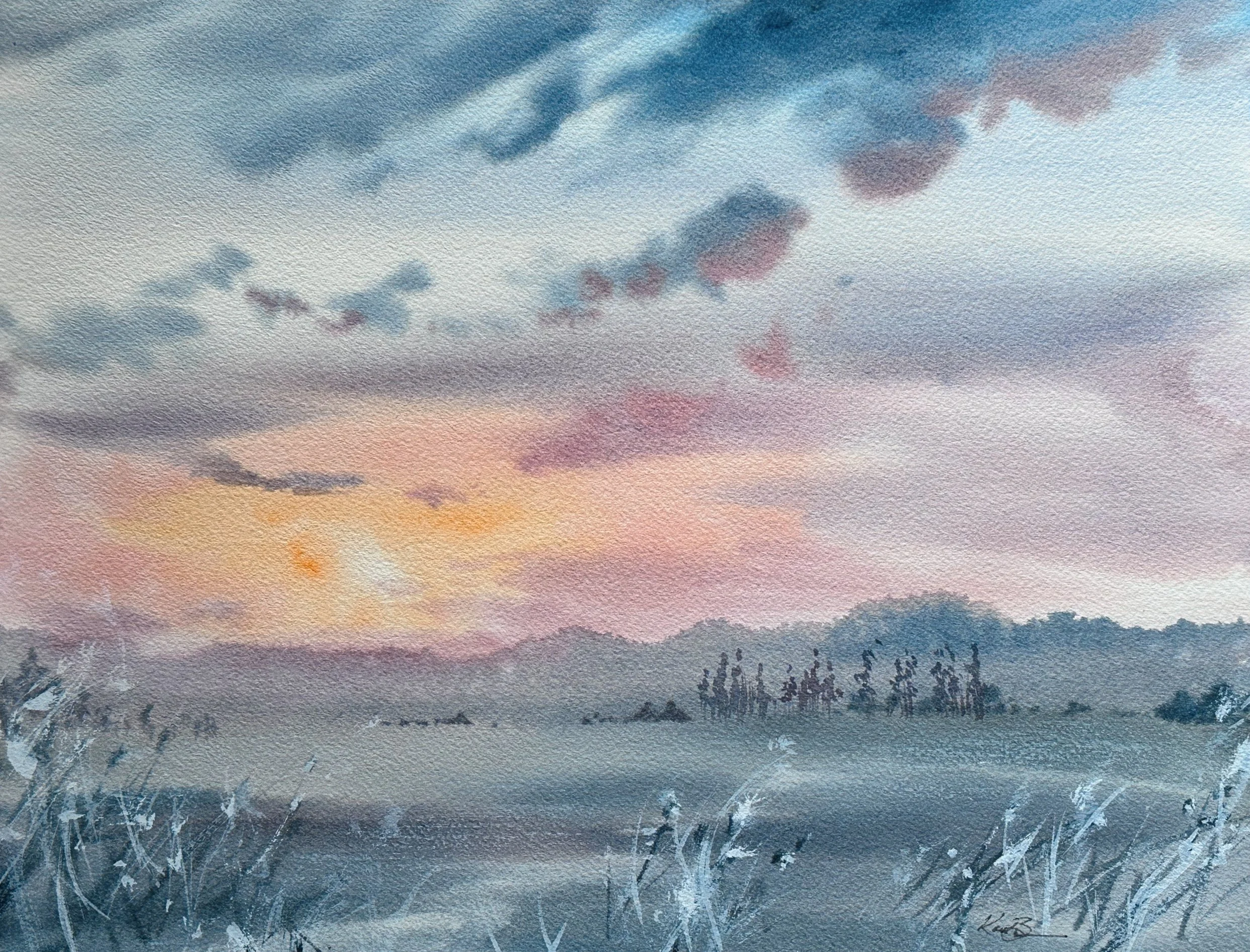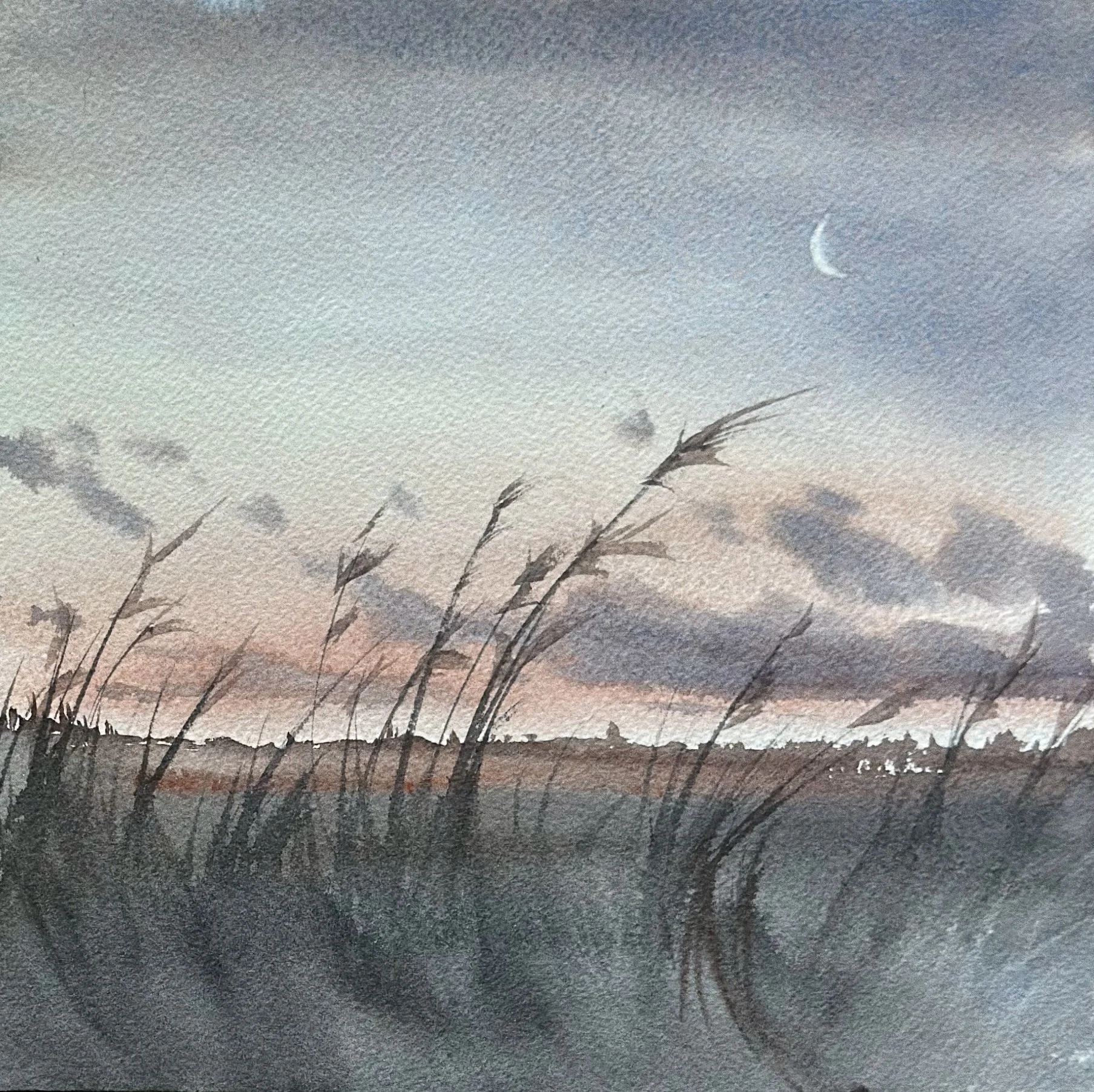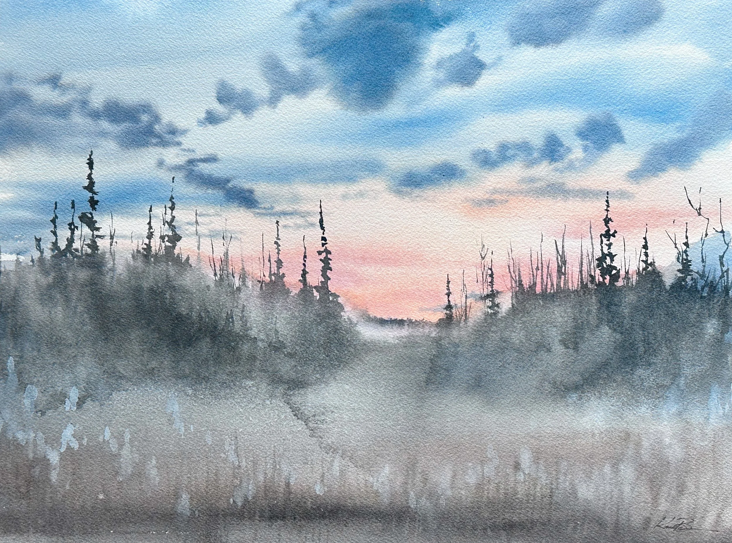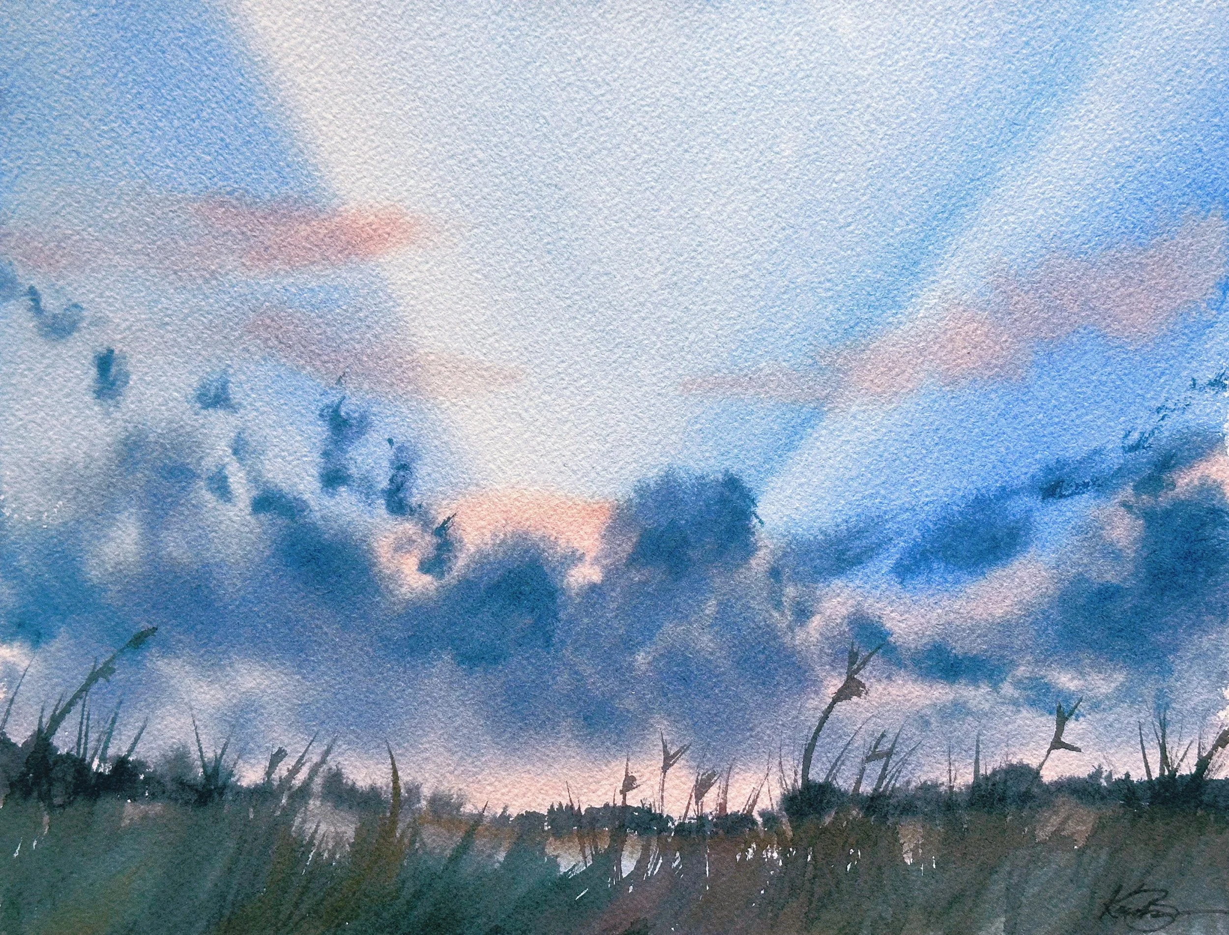 While in the first month of the year, I took a break from creating much at all — this was more beneficial than I’d ever thought it would be — the last two months have been filled with new work. In a way, I found my own rhythm in using painting as a means of transmuting emotional and physical pain into something new, just for the sake of moving it. I have been stepping back to examine this body of work that has formed in these cold and dreary months and what I noticed was that there is a quality quite free and expansive that runs through each of these pieces. I can tell now that these paintings were a way for me to move emotions that felt heavy and confining. I couldn’t stop creating these wide, open, colorful skies, and swaying grasses. I think I felt stuck so I created movement somewhere else. It made me feel free, if only for a moment.