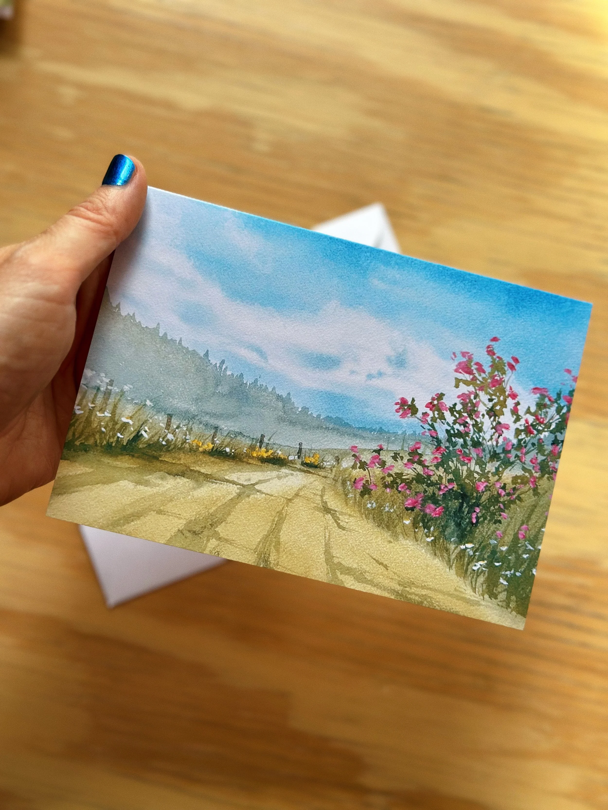 Card dimensions are 4”x6”, blank on the inside, and comes with a plain, white envelope.